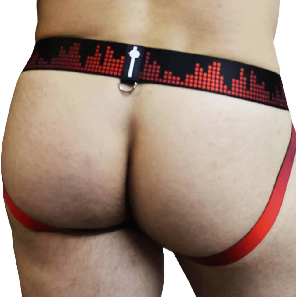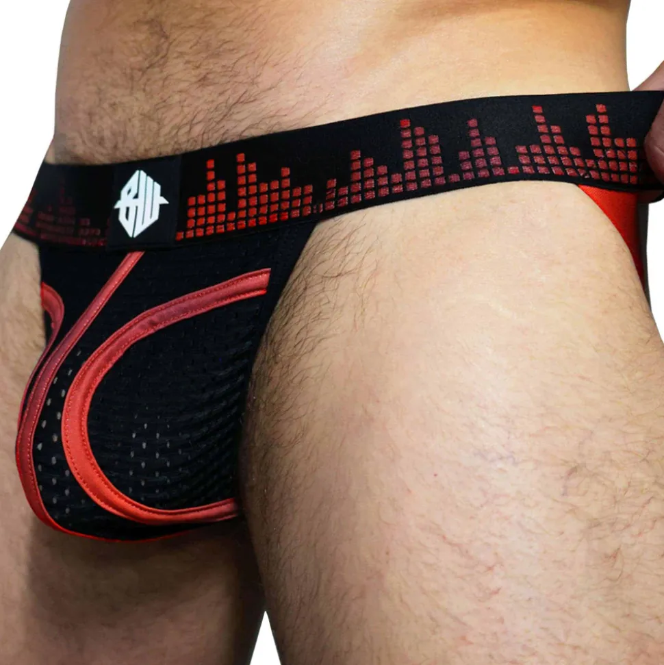 Jockstrap en mesh ajouré, doux, léger et respirant. Coutures contrastées soulignant le volume de la poche frontale non doublée. Ceinture élastique ornée d’un motif de couleur intense illustrant un signal audio, à l’image de la collection Equalizer. Patchs Breedwell en PVC de qualité supérieure.