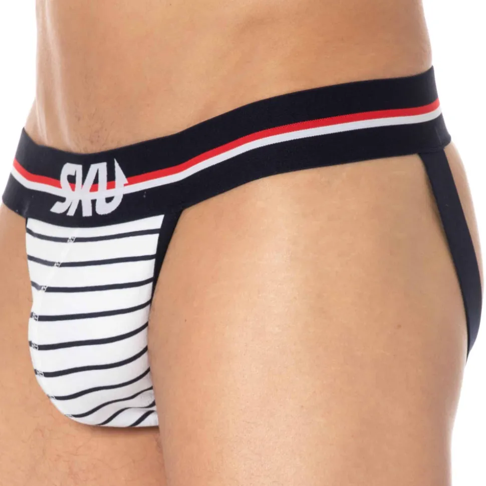 Jockstrap sport et sexy en coton premium doux et extensible de couleur intense. Coupe taille basse ajustée. Poche frontale préformée assurant un excellent maintien. Ceinture tricolore large et douce signée SKU. Bordures contrastées.