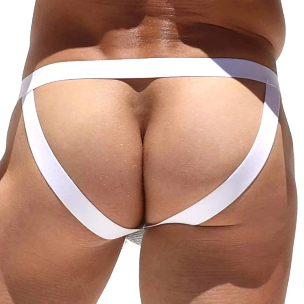 Jockstrap sexy en coton extensible côtelé, doux et confortable. Poche frontale enveloppante doublée. Rivet blanc mat signé Rufskin sur la hanche gauche. Fabriqué en Californie.