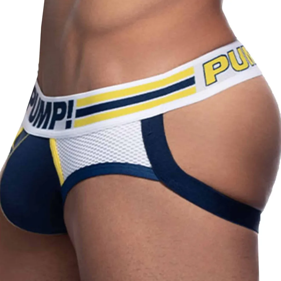 Jockstrap en coton stretch doux et confortable. Poche frontale préformée et doublée en coton. Logo Pro-league sur la fesse droite. Empiècements latéraux en micro mesh respirant. Bordures des cuisses élastiquées. Ceinture élastique large signée PUMP!.