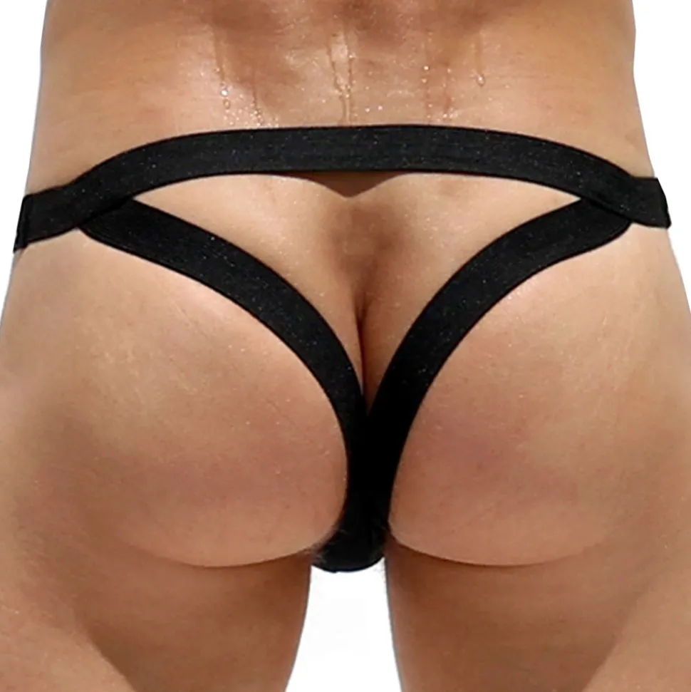 Jockstrap original en microfibre extensible douce de couleur unie. Poche frontale enveloppante non doublée avec braguette factice. Les bandes élastiques à l’arrière sont modulables pour passer en mode string. Fine ceinture élastique agrémentée d’un rivet métallique signé Rufskin.