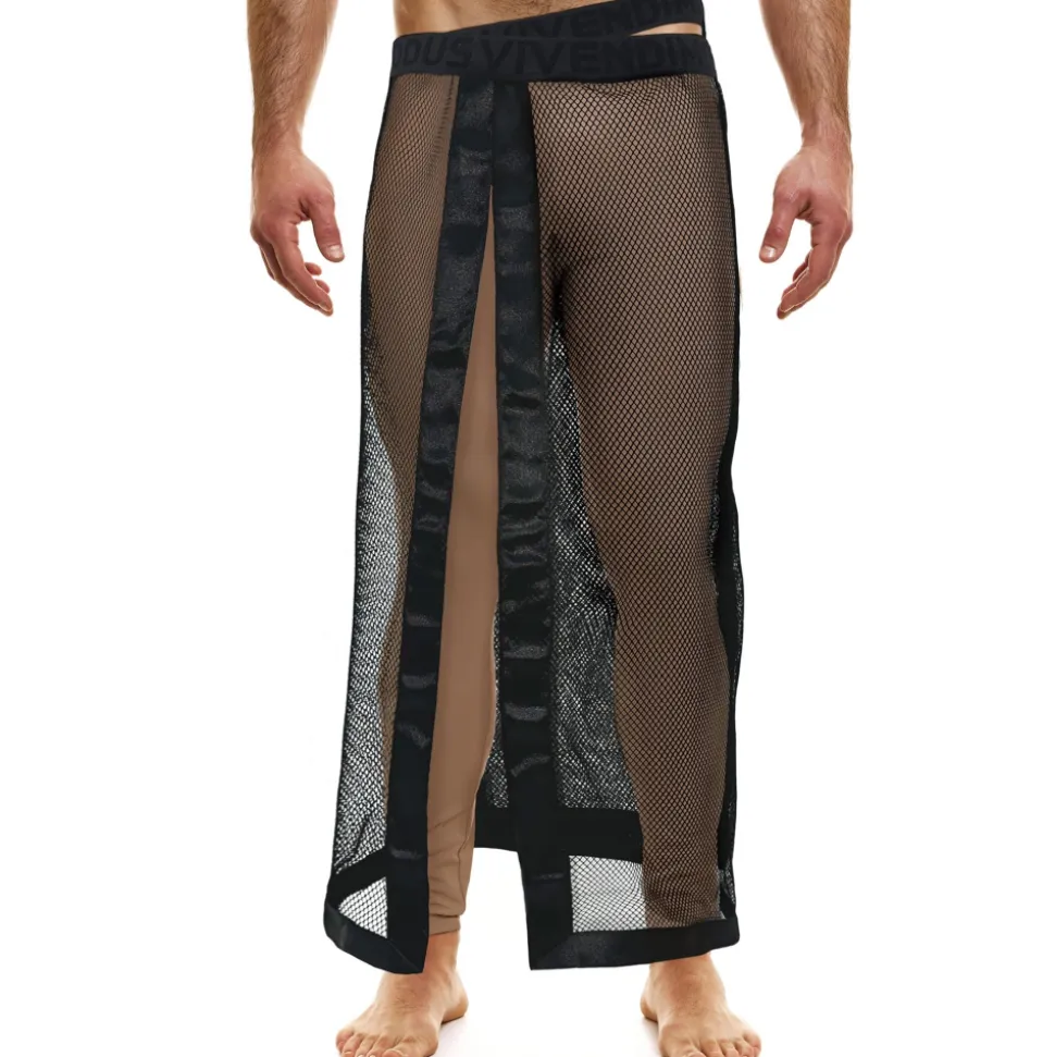 Jupe longue, audacieuse et luxueuse en résille extensible à large maille. Non doublée pour une totale transparence. Constituée de 2 panneaux distincts disposant chacun de sa ceinture élastique signée Modus Vivendi. Bordures satinées.