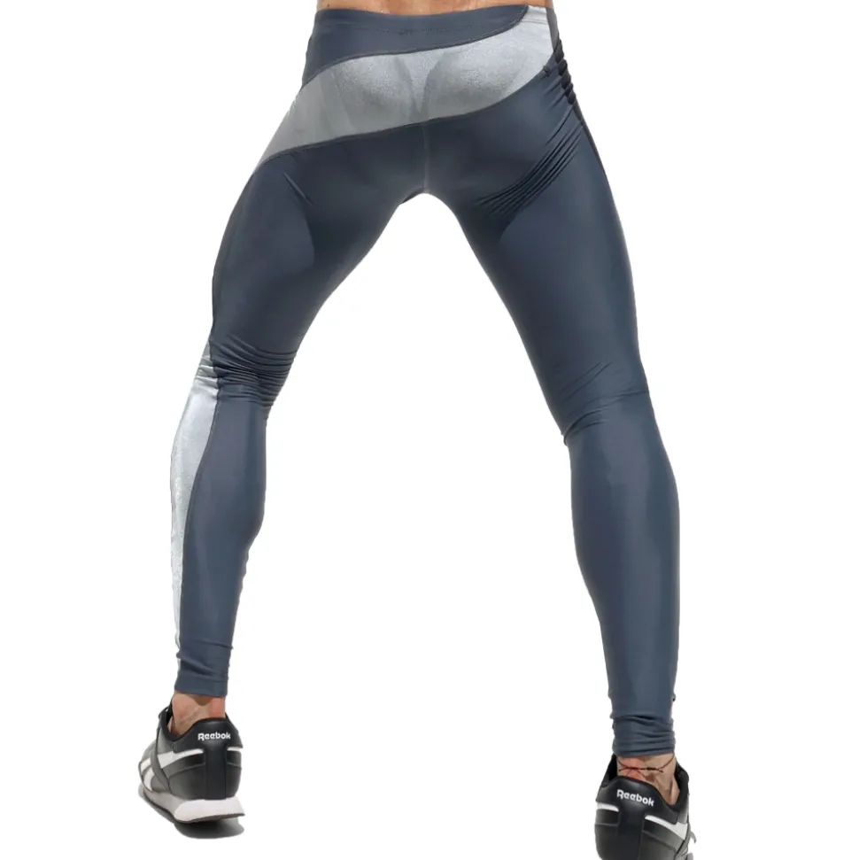 Legging de compression en microfibre extensible de qualité supérieure. Tissu à mémoire de forme évacuant rapidement la transpiration. Bande contrastée brillante qui enveloppe la jambe gauche et se termine sur les fesses. Braguette factice. Ceinture élastique recouverte avec cordon de serrage intérieur. Rivet métallique signé Rufskin à l’arrière.