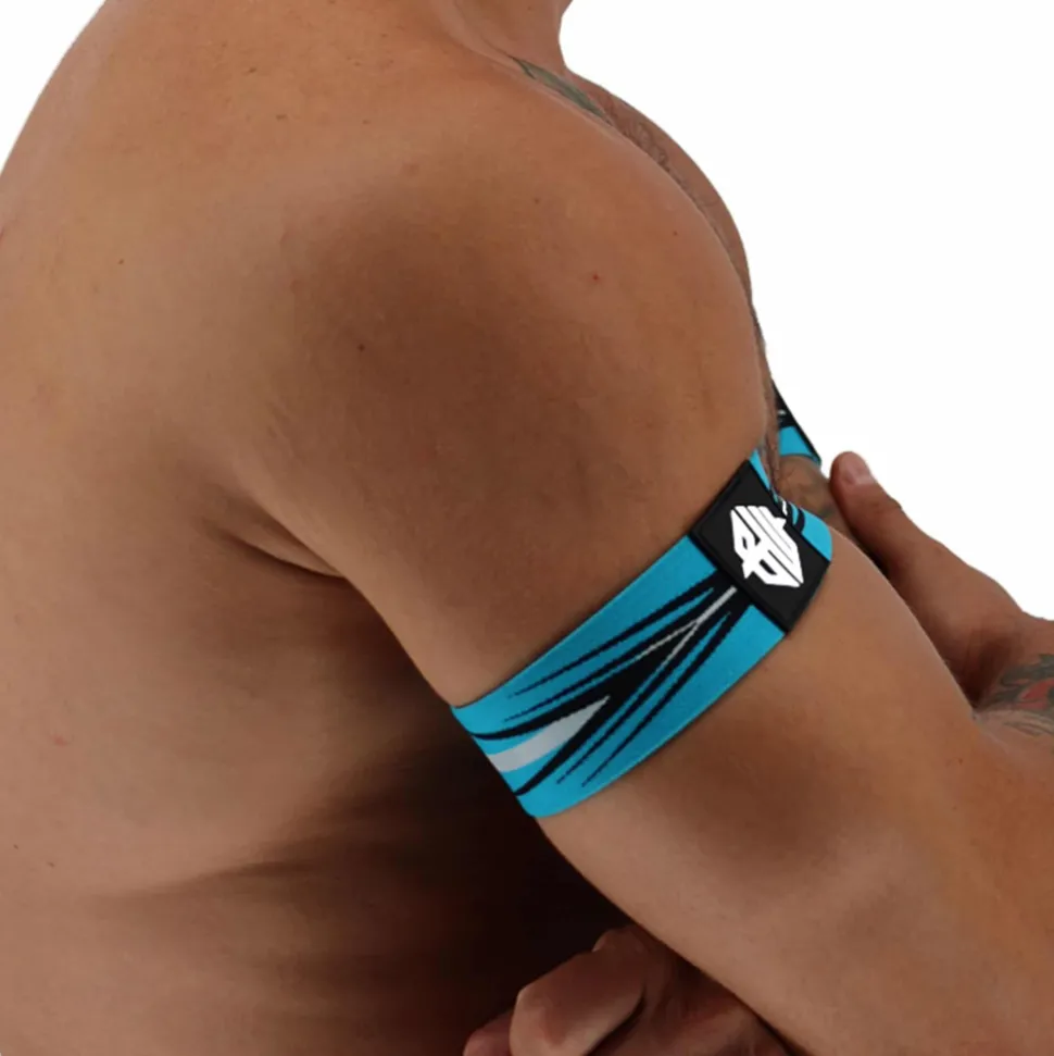 Paire de brassards en bande élastique jacquard. Motif de couleur contrastée. Accessoire sexy, parfait pour flatter vos biceps. Logo Breedwell en PVC.