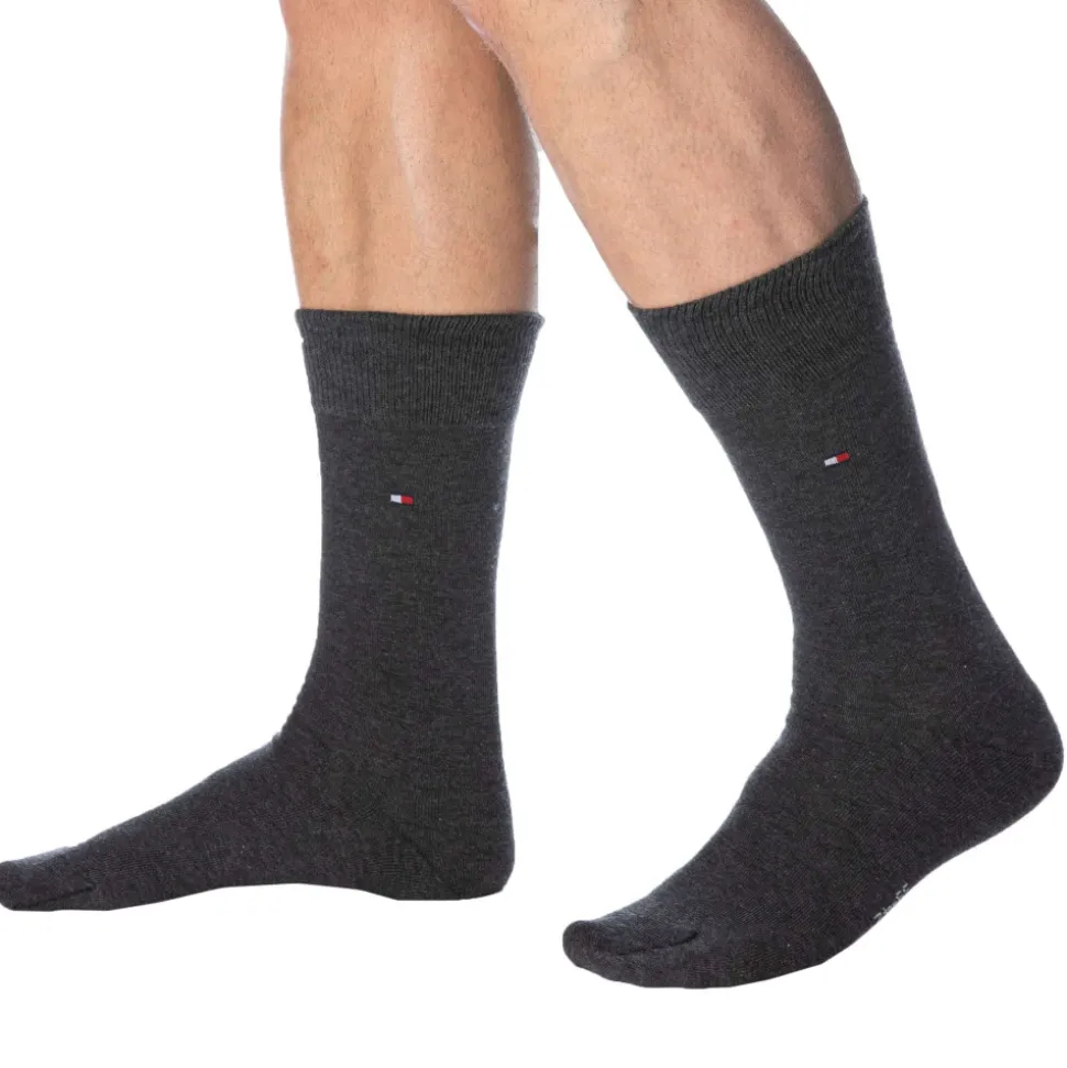 Lot de 2 paires de chaussettes mi-mollet en coton extensible. Bords côtelés. Drapeau Tommy Hilfiger de chaque coté de la cheville. Taille 39-42 et 43/46.