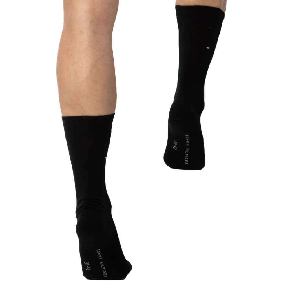 Lot de 2 paires de chaussettes mi-mollet en coton extensible. Bords côtelés. Drapeau Tommy Hilfiger de chaque coté de la cheville. Taille 39-42 et 43/46.