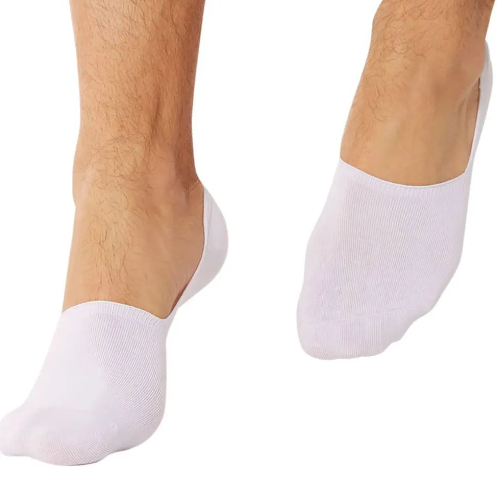 Lot de 2 paires de chaussettes invisibles de couleur unie en coton doux et respirant. Talon antidérapant grâce à la bande de silicone. 2 tailles : 39-42 et 43-46.