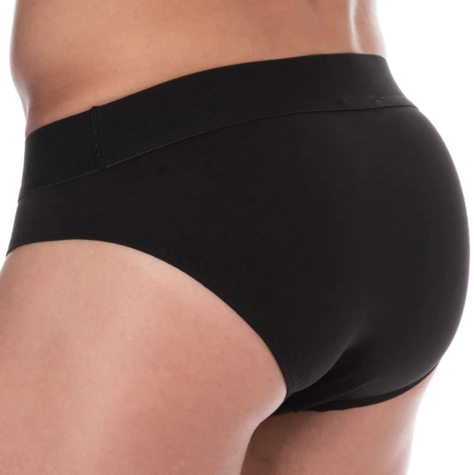 Lot de deux slips en coton extensible, très doux et confortable. Poche frontale doublée. Ceinture élastique signée Bikkembergs.