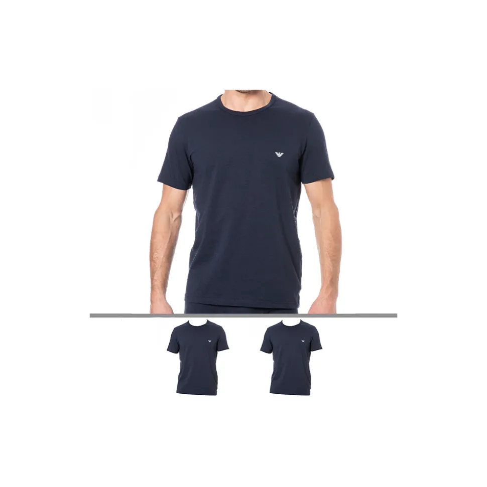 Lot de 2 t-shirts de couleur unie en coton ultra doux, léger et confortable. Coupe droite, simple et élégante. Manches courtes et col rond. Logo Emporio Armani de couleur contrastée sur la poitrine.
