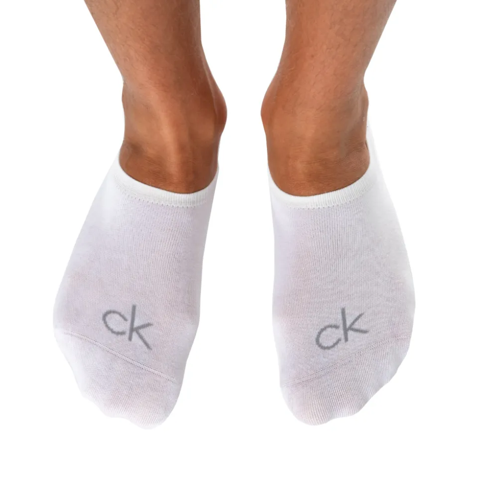 Lot de 3 paires de chaussettes invisibles en coton peigné doux et confortable. Coupe couvrant totalement le dessus du pied. Gros logo CK sur le pied. Talon antidérapant grâce aux fines bandes de silicone. 2 tailles : 39/42 et 43/46.