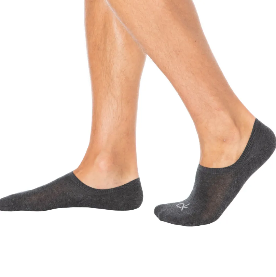 Lot de 3 paires de chaussettes invisibles en coton peigné doux et confortable. Coupe couvrant totalement le dessus du pied. Gros logo CK sur le pied. Talon antidérapant grâce aux fines bandes de silicone. 2 tailles : 39/42 et 43/46.