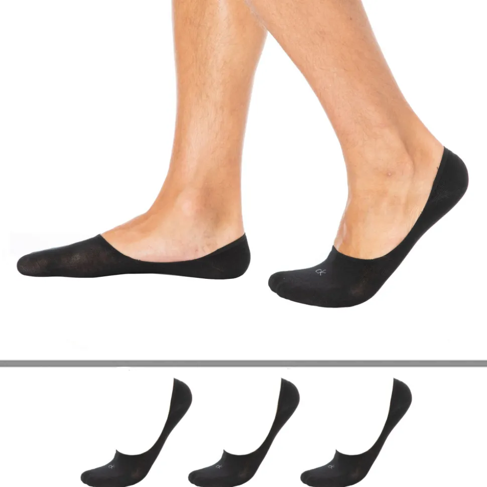 Lot de 3 paires de chaussettes invisibles en coton peigné doux et confortable. Coupe ne couvrant que partiellement le dessus du pied. Logo CK sur le pied. Talon antidérapant grâce aux fines bandes de silicone. 2 tailles : 39/42 et 43/46.