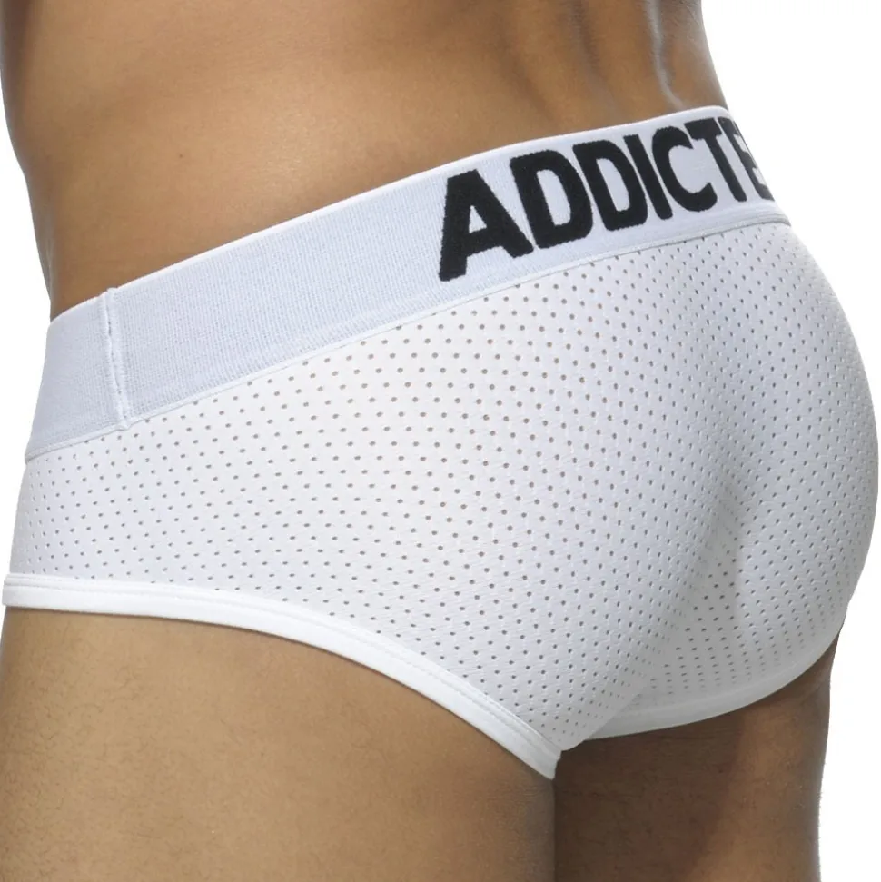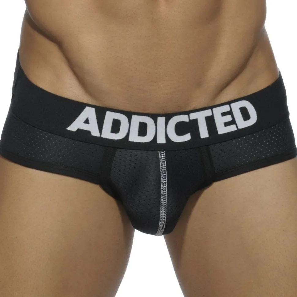 Lot de 3 slips taille basse en mesh ultra doux et semi-transparent. Poche frontale push up non doublée pour mettre en avant votre masculinité. Couture verticale contrastée sur la poche frontale. Ceinture élastique signée Addicted.