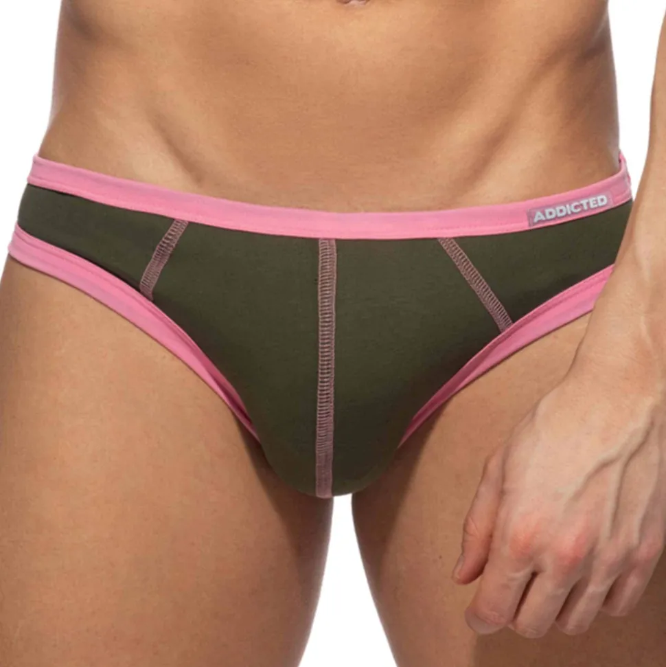 Lot de 3 slips bikini en coton extensible doux et confortable. Combinaisons de couleurs contrastées vives et stylées. Grande poche frontale. Ceinture élastique fine avec logo Addicted en silicone sur la taille gauche.