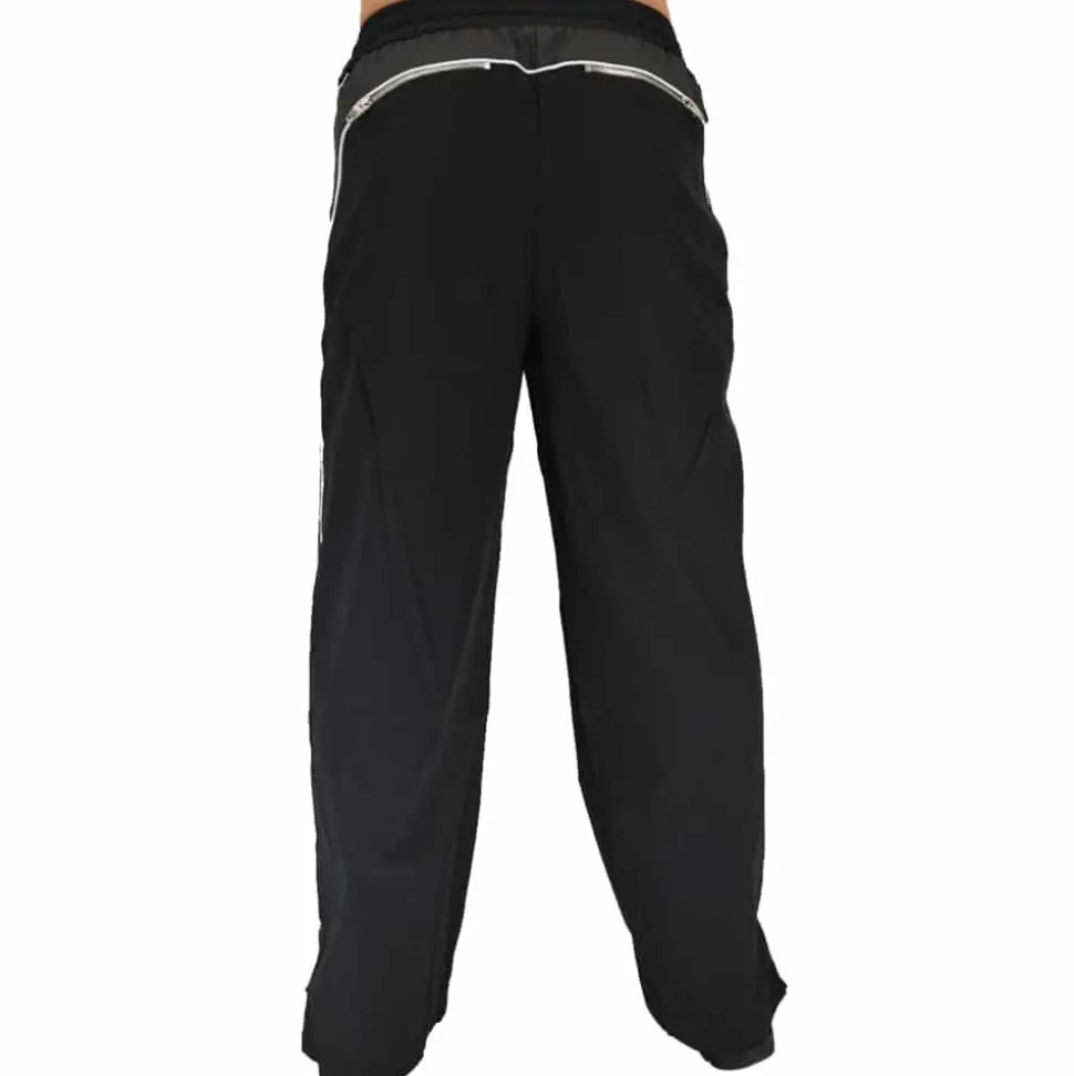 Pantalon robuste et confortable en Nylon et simili cuir. Coupe large avec fermetures Eclair pour ajuster l’ouverture au niveau des chevilles. Ceinture élastique avec cordon de serrage. 4 poches zippées. Patch Breedwell en silicone à l’arrière.