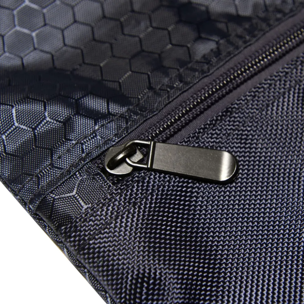 Sac de plage en microfibre légère. Grande poche extérieure zippée. Petite poche intérieure avec fermeture Eclair. Lanières réglables réglables pour fermer le sac et le porter sur le dos. Logo ES Collection. Dimensions : H 45 x L 36 cm.