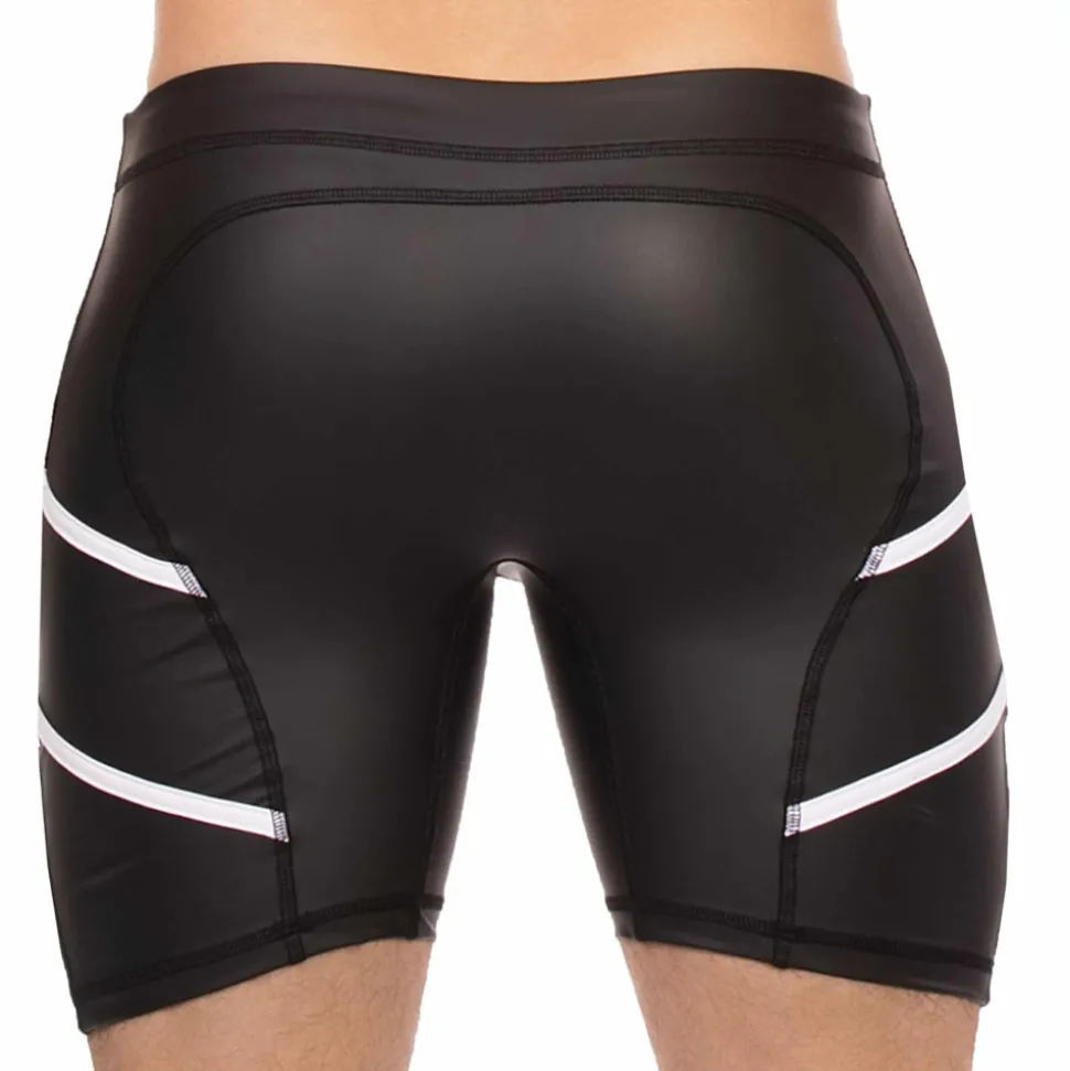 Short cycliste en simili-cuir avec une finition lisse. Coupe moulante qui épouse parfaitement les formes. Bandes de couleur contrastée. Ceinture élastique avec logo Barcode en silicone.