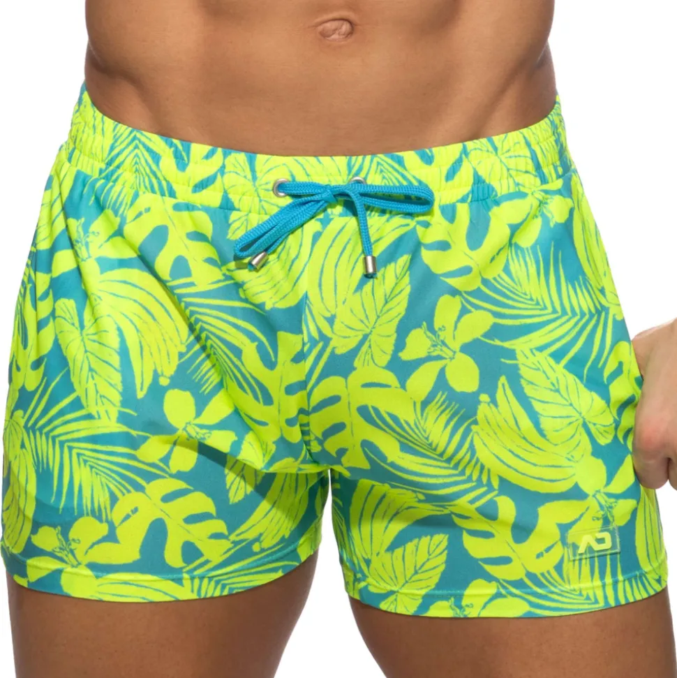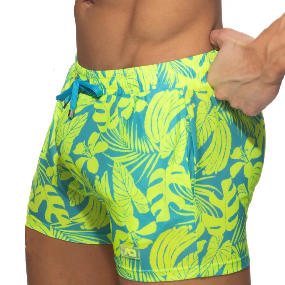Short en microfibre légère imprimée d’un motif tropical très tendance. Coupe taille basse et ajustée. 2 poches. Ceinture élastique avec cordon de serrage. Logo AD en silicone sur la cuisse gauche.