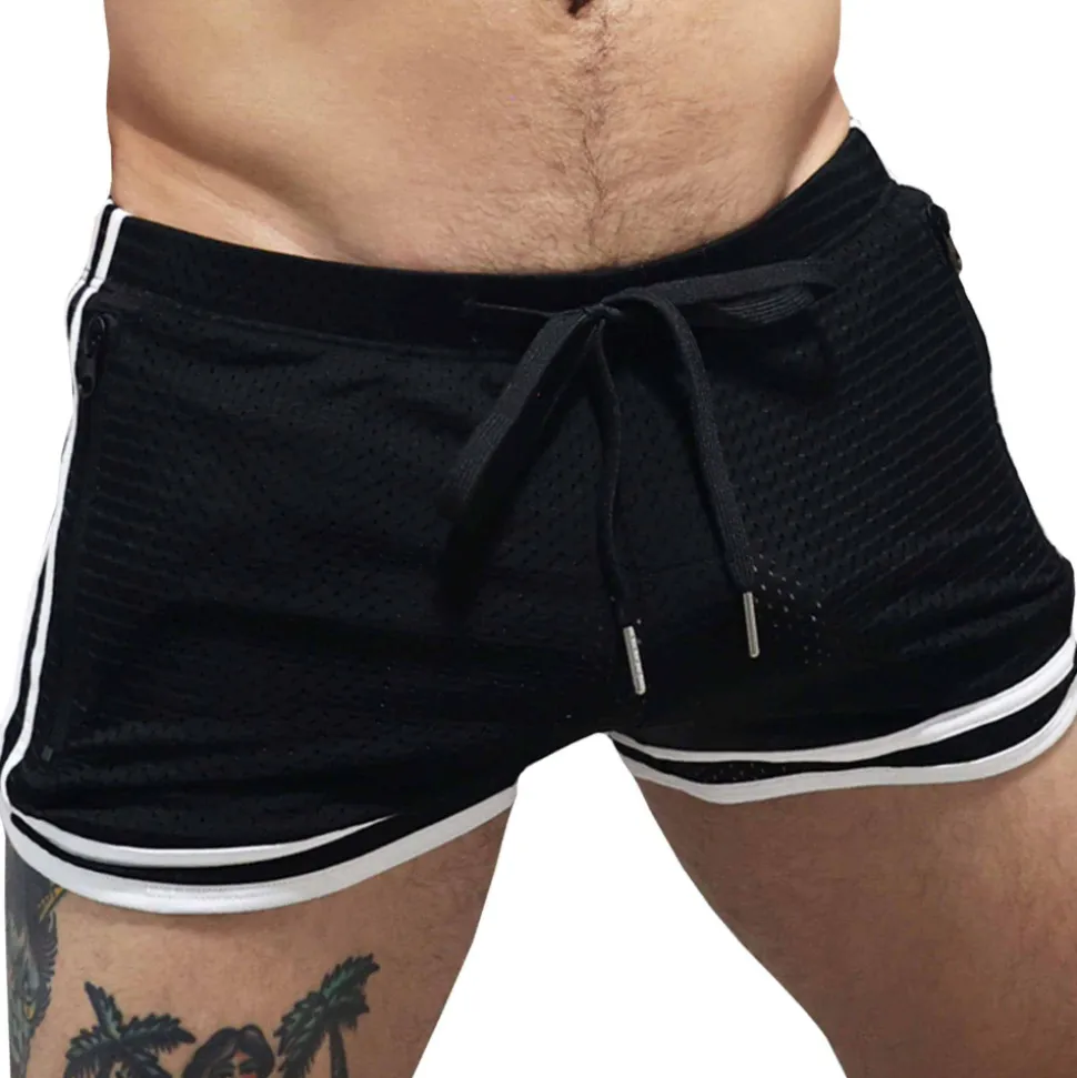 Short taille basse en microfibre perforée, douce et légère. 2 poches latérales zippées. Double bande sport. Ceinture élastique avec cordon de serrage. Logo Breedwell en PVC sur la cuisse gauche.