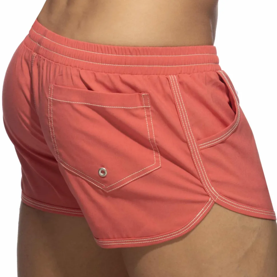Short de bain court en microfibre séchant rapidement. Tissu Ecowave recyclé à partir de bouteilles en plastique. Coupe rétro taille basse, ajustée et échancrée sur les côtés. Slip intérieur U-Shape en mesh pour un grand confort. Deux poches avant et une poche arrière avec œillet. Ceinture élastique avec cordon de serrage de couleur contrastée. Logo Addicted en silicone sur la cuisse gauche.