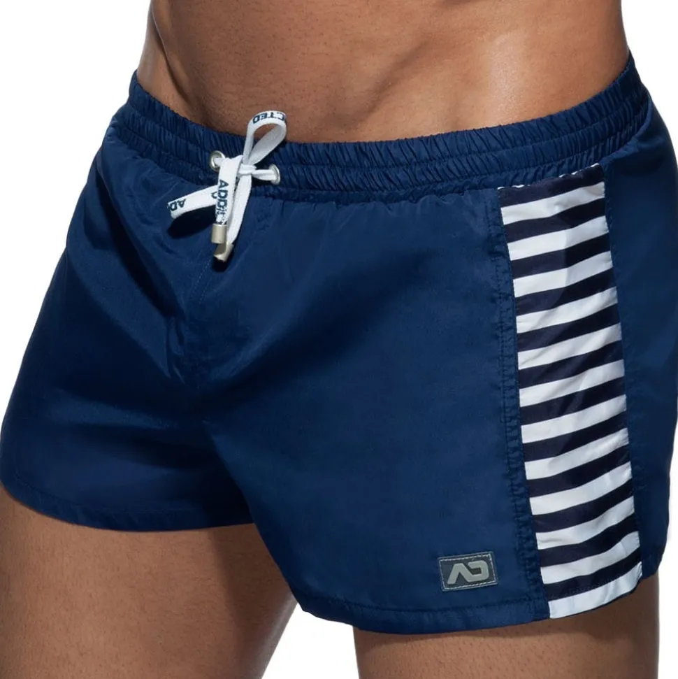 Short de bain taille basse en microfibre à séchage rapide. Rayures façon marinière sur les côtés. Slip intérieur U-Shape en mesh pour un grand confort. Poche arrière avec oeillet d’écoulement de l’eau. Logo Addicted en silicone sur la cuisse gauche. Ceinture élastique avec cordon de serrage. Fabriqué à Barcelone.