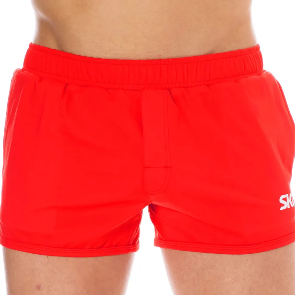 Short de bain sport en microfibre extensible séchant rapidement. Slip intérieur en mesh fin pour plus de confort. Petite fente sur le côté pour une plus grande liberté de mouvement. Logo SKU imprimé sur la cuisse gauche. Braguette factice. Ceinture élastique.