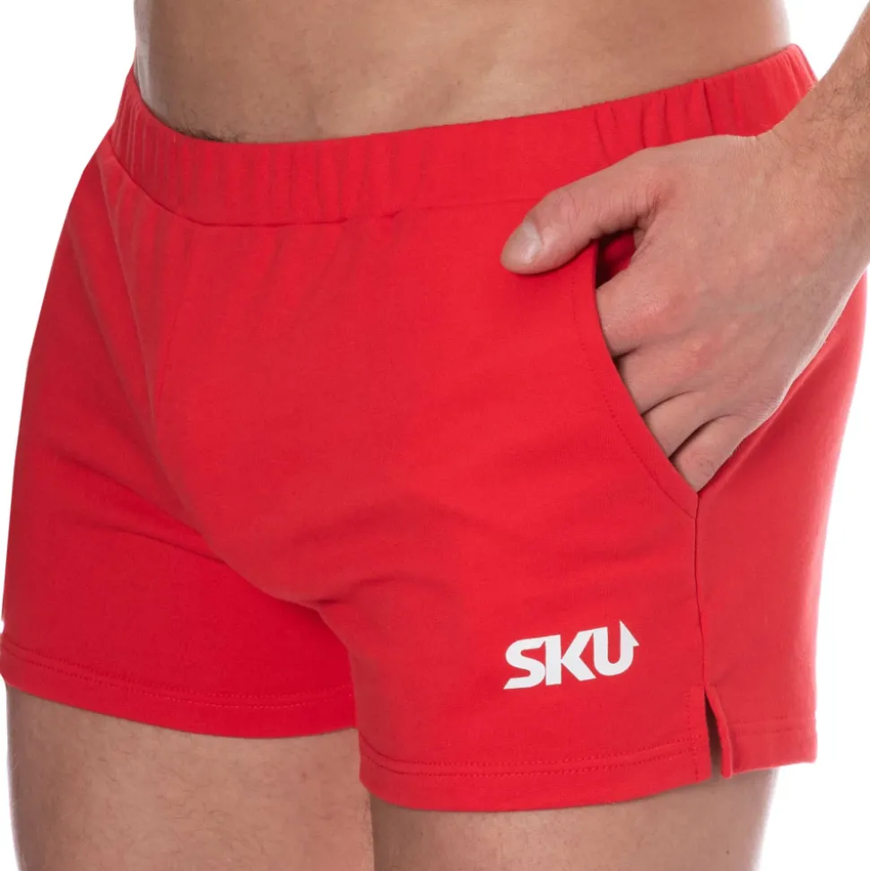 Short de sport très confortable en molleton 100% coton. Coupe courte, ajustée et échancrée sur les côtés. 2 poches latérales et une poche arrière. Logo SKU imprimé sur la cuisse gauche. Ceinture élastique recouverte.
