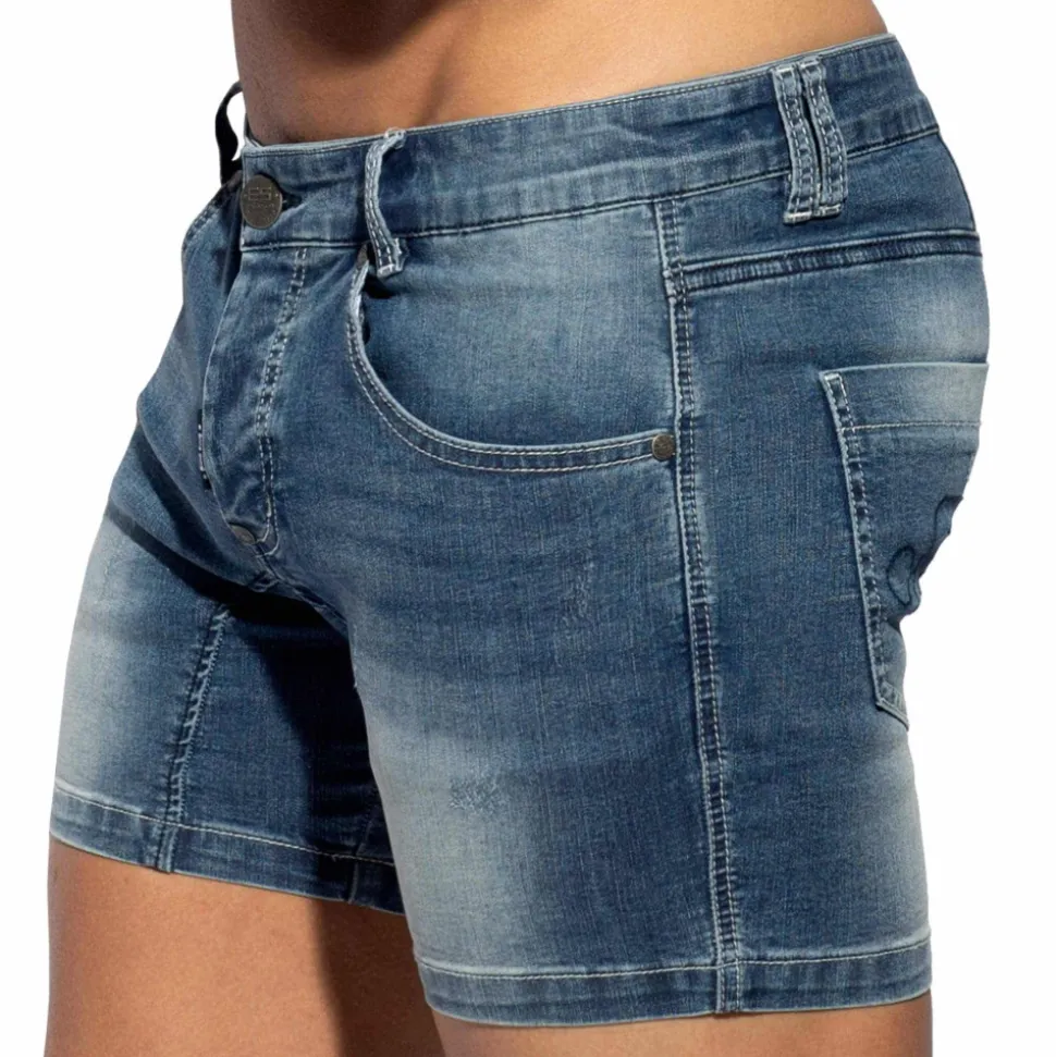 Short en jeans stretch très résistant et confortable. Coupe taille basse, sexy et ajustée. 3 poches à l’avant et 2 poches à l’arrière. Effet usé et délavé. Rivets métalliques ES Collection. Braguette à boutons. Passants de ceinture. Logo ES brodé sur les poches arrières. Taille US.