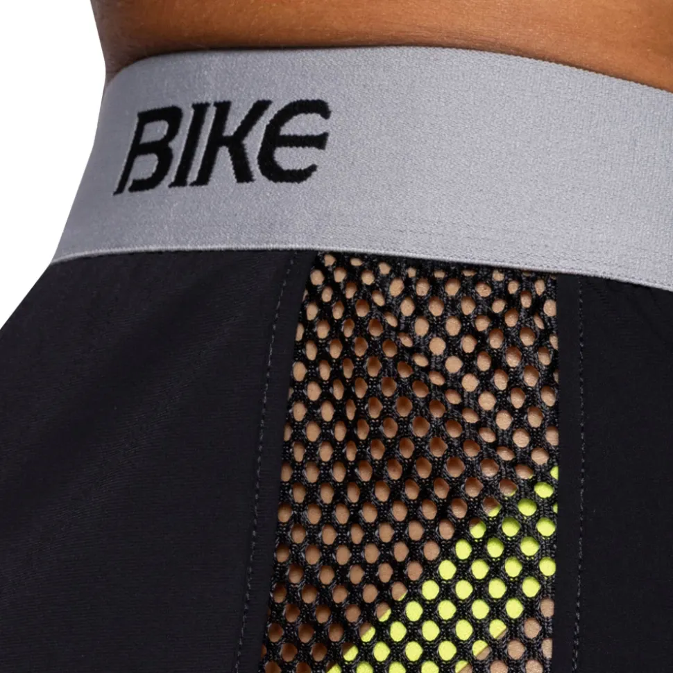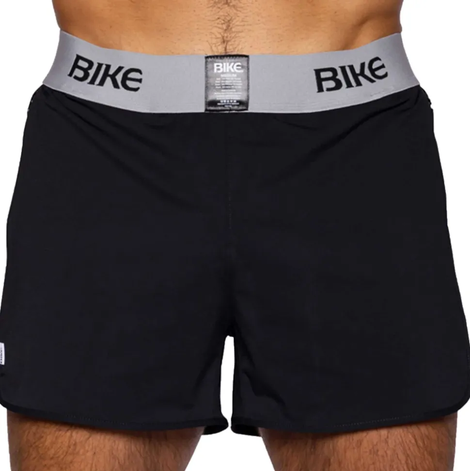 Short sport intégrant un jockstrap pour un confort et un maintien incomparables. En microfibre extensible, douce et légère. Bandes transparentes en résille sur les côtés. Poche avec fermeture éclair à l’arrière. Large ceinture élastique de couleur contrastée signée BIKE.