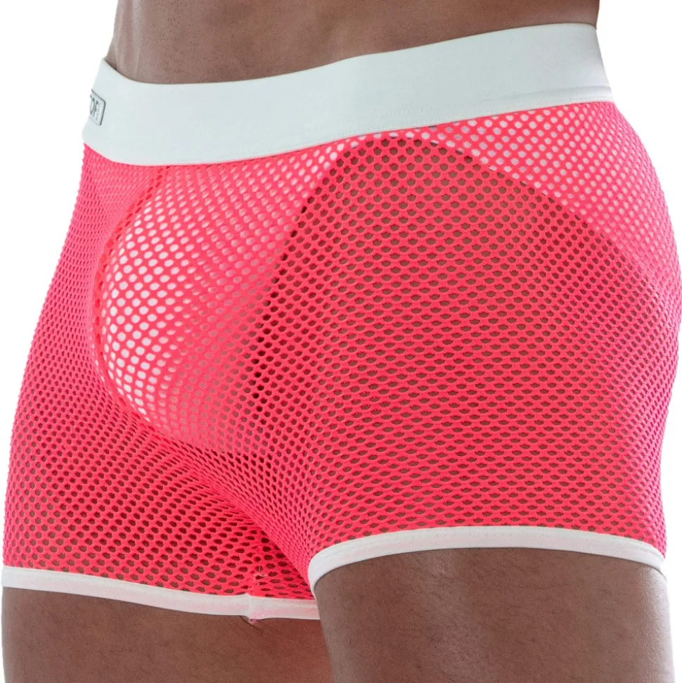Short très sexy en résille ajourée, légère et respirante de couleur fluo. A porter par-dessus un sous-vêtement, ou sans rien en-dessous pour les plus audacieux. Ceinture élastique et bordures contrastées. Etiquette TOF Paris cousue sur la hanche droite. Fabrication française.