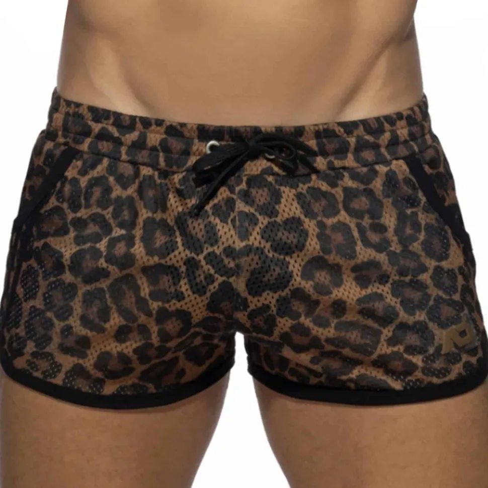 Short de sport en mesh respirant et semi-transparent. Imprimé leopard très sexy. Coupe échancrée sur le côté. Poche intérieure Kango pour un grand confort frontal. Logo AD en silicone cousu sur la jambe gauche.2 poches. Ceinture élastique avec cordon de serrage.