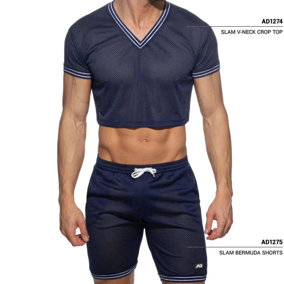 Short long en mesh sport, léger et respirant, inspiré du basketball. Ceinture élastique avec cordon de serrage. 2 poches. Bordures des cuisses soulignées par une double bande sport. Poche intérieure Kango pour un grand confort frontal. Logo AD en silicone sur la jambe gauche.