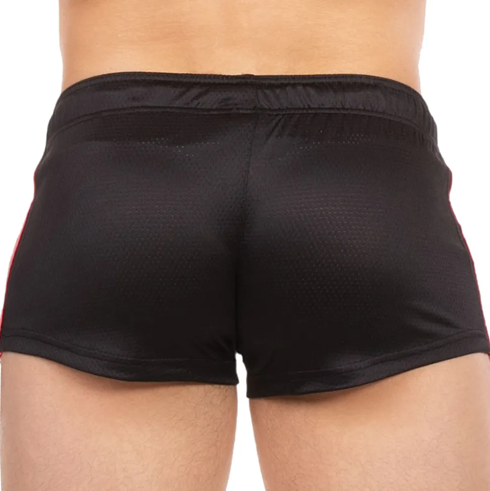 Short court et sexy en mesh respirant non doublé. Bandes sport colorées sur les côtés. Poche intérieure pour un grand confort frontal. Ceinture élastique avec cordon de serrage. Logo Barcode sur la cuisse gauche.
