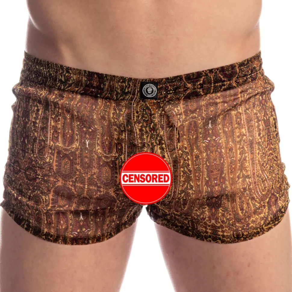 Short raffiné en viscose soyeuse, légère et totalement transparente. Motif cachemire inspiré du lac Nigeen. Fentes latérales audacieuses. Ceinture élastique avec cordon se serrage intérieur et logo L’homme Invisible.