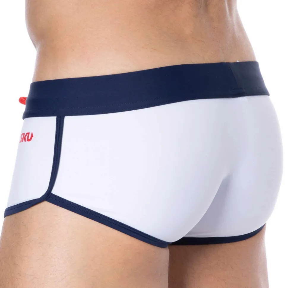 Shorty de bain sport en microfibre séchant rapidement. Coupe taille basse très ajustée. Poche frontale doublée. Bordures de couleur contrastée. Logo SKU imprimé sur la cuisse gauche. Ceinture élastique avec cordon de serrage.