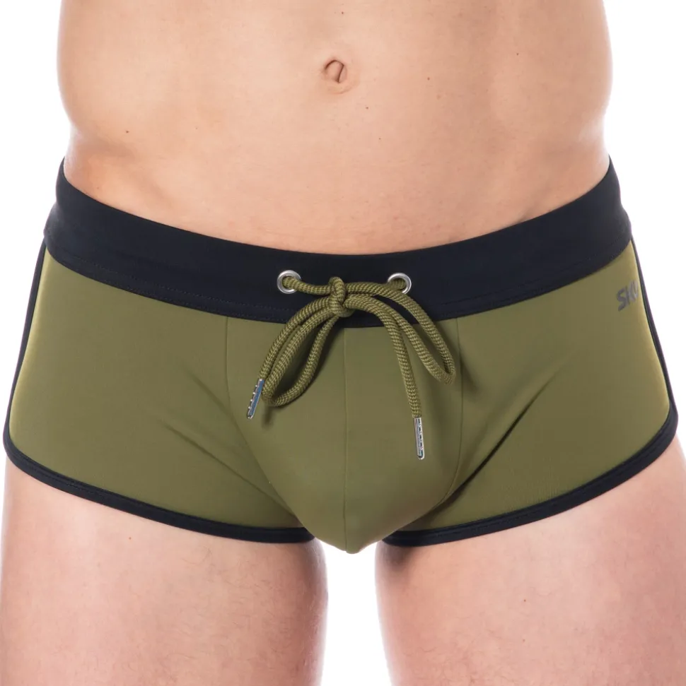 Shorty de bain sport en microfibre séchant rapidement. Coupe taille basse très ajustée. Poche frontale doublée. Bordures de couleur contrastée. Logo SKU imprimé sur la cuisse gauche. Ceinture élastique avec cordon de serrage.