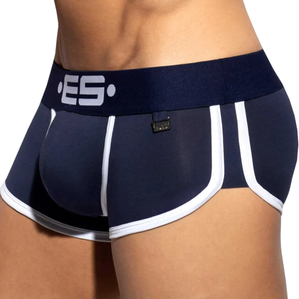 Shorty dont la coupe taille basse parfaitement ajustée a été conçue par Les Dessous d’Apollon. Poche frontale superbement découpée pour un très grand confort. L’échancrure sur le côté est soulignée par une bande de couleur contrastée. Large ceinture élastique signée ES Collection. Plaque métallique ES Paris en Zamak inoxydable.