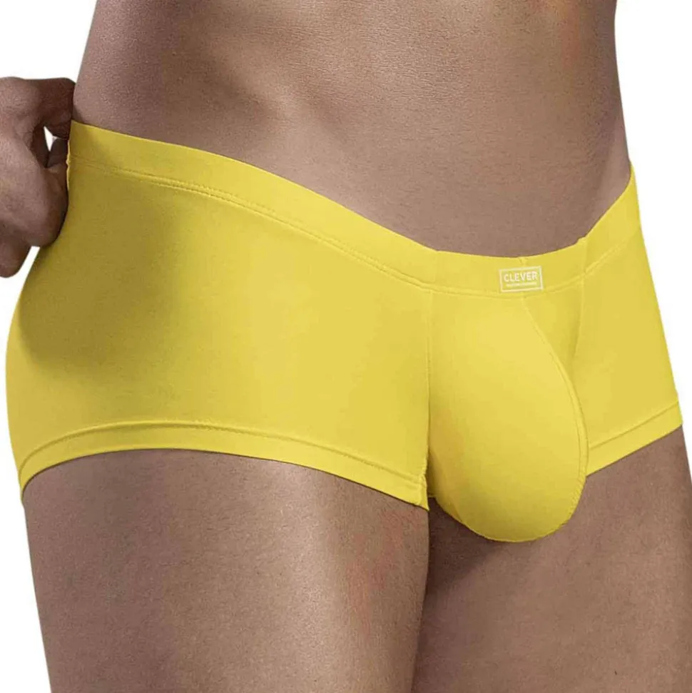 Shorty super taille basse en microfibre extensible, douce et légère, de couleur intense. Poche anatomique enveloppant naturellement votre intimité, pour un maintien très agréable et un léger effet push-up. Fine ceinture élastique recouverte avec logo Clever en silicone.