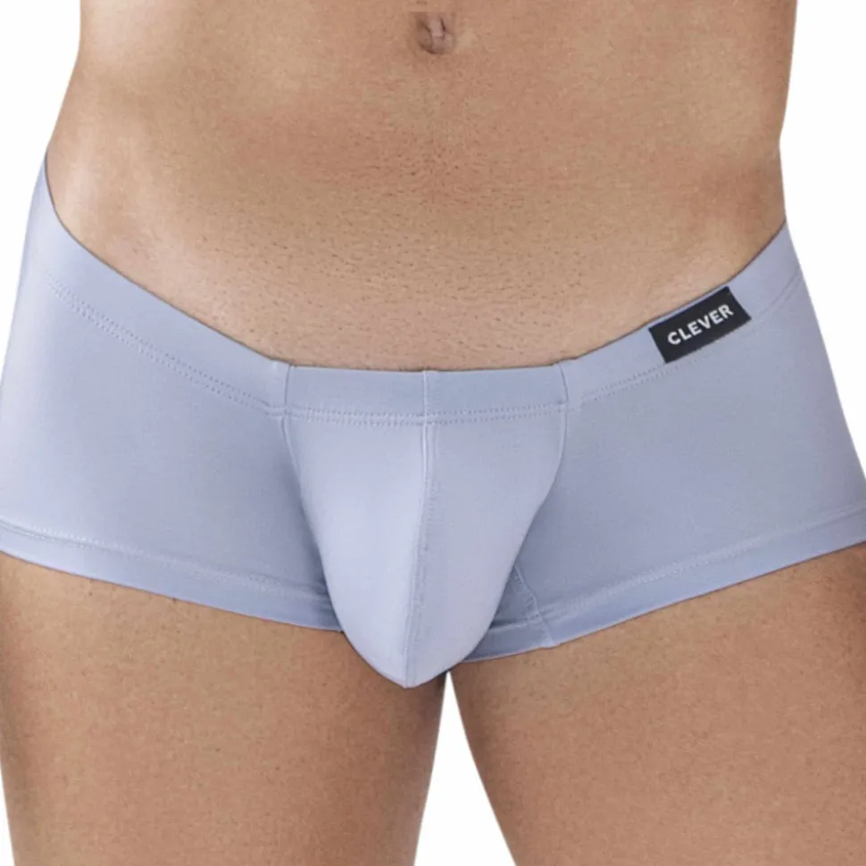 Shorty super taille basse en microfibre extensible, douce et légère, de couleur unie. Poche frontale anatomique enveloppant naturellement votre intimité, pour un maintien très agréable et sensuel. Coupe originale très ajustée. Logo Clever cousu sur la fine ceinture élastique recouverte.