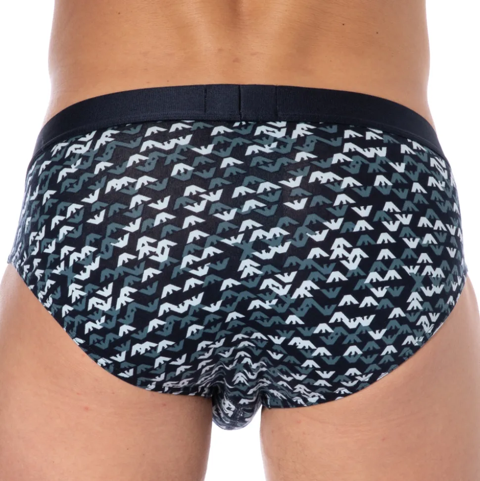 Slip en coton extensible très doux et confortable. Imprimé allover constitué d’aigles iconiques de la marque. Coupe taille basse, simple et élégante. Poche frontale doublée. Ceinture élastique signée Emporio Armani.