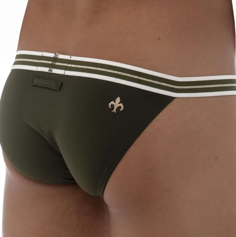 Slip tanga super taille basse en résille douce et soyeuse. Poche frontale 3D non doublée, encerclée par un strap élastique pour un bel effet push up. Logo Marcuse brodé devant et derrière.
