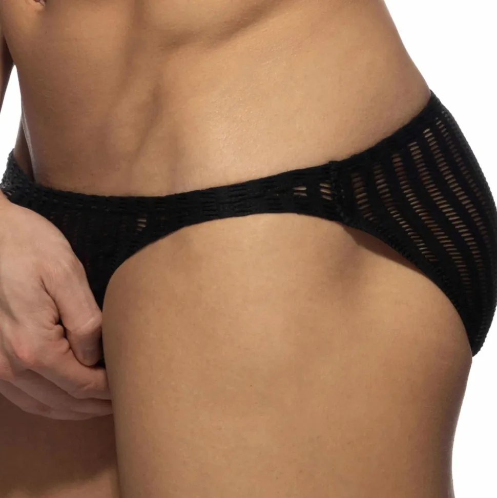 Slip taille basse très sexy et confortable en résille à maillage large. Non doublé pour une grande transparence. Coupe minimaliste et très sexy. Poche frontale moulée sans couture pour un confort optimal. Logo AD en silicone à l’arrière.