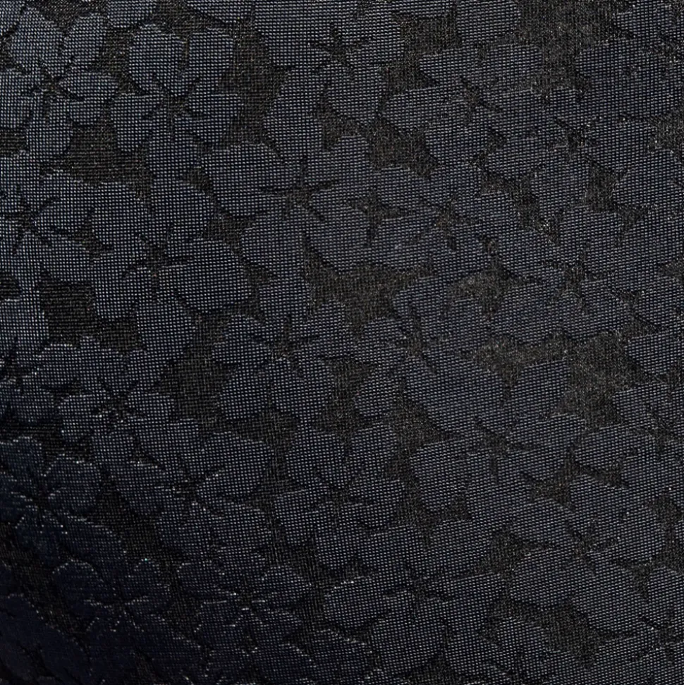 Slip en voile extensible légèrement transparent. Motif floral discret et élégant façon dentelle. Coupe taille basse et ajustée. Ceinture élastique signée ES Collection.