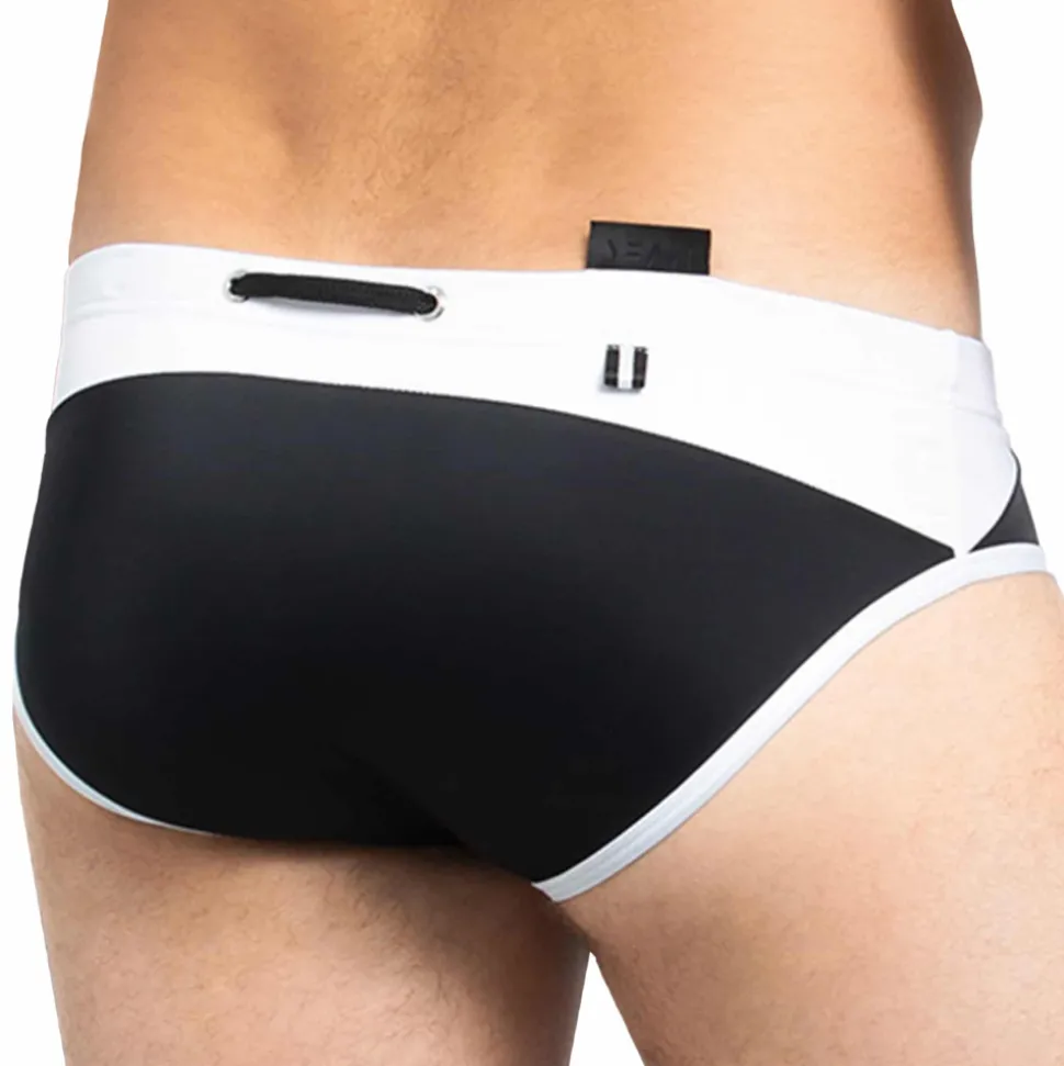 Slip de bain bicolore de qualité premium en microfibre italienne. Design innovant qui met en valeur les formes masculines. Matière recyclée durable, séchant rapidement, résistant au chlore, huiles et écrans solaires. Poche frontale doublée. Ceinture élastique avec cordon de serrage latéral qui apporte une touche d’originalité. Fabriqué en Italie.
