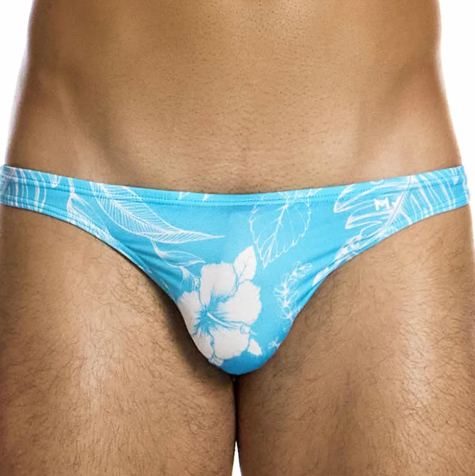Slip de bain en microfibre séchant rapidement et résistant aux UV. Matière recyclée à partir de bouteilles en plastique. Imprimé floral très élégant. Coupe sexy, minimaliste et ultra taille basse. Poche frontale doublée. Logo MV en silicone sur la hanche gauche.