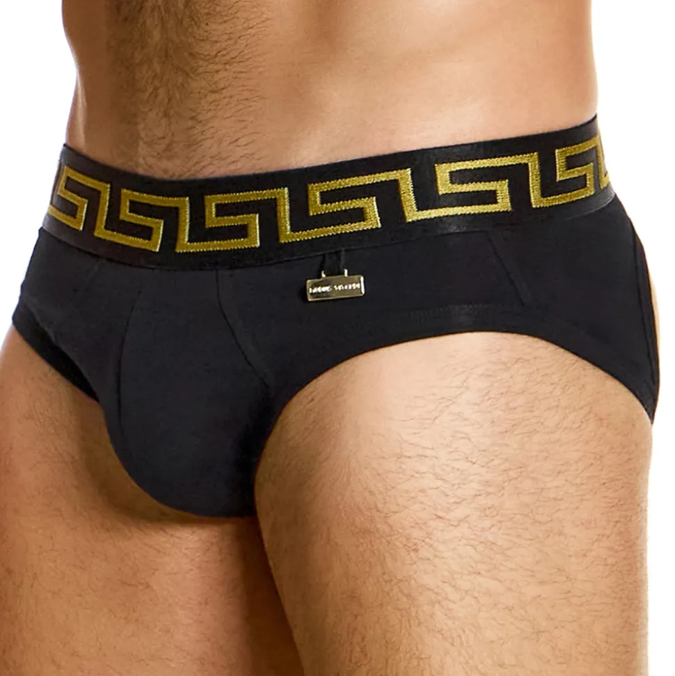 Slip taille basse, original et sexy, en coton ultra doux et confortable. L’arrière a été découpé à la manière d’un jockstrap, afin d’offrir une totale liberté de mouvement. Poche frontale préformée et doublée pour plus de confort. Plaque métallique Modus Vivendi sur la hanche gauche. Motif inspiré par la Grèce antique sur la ceinture élastique.