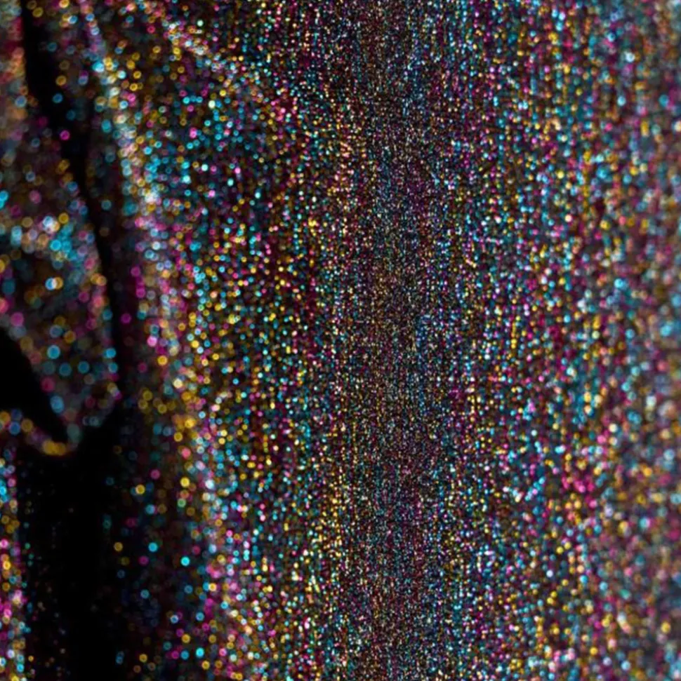 Slip glamour en microfibre tricotée avec des fils métallisés présentant des reflets multicolores. Coupe taille basse minimaliste. Poche frontale non doublée. Etiquette Modus Vivendi argentée cousue sur la hanche gauche.
