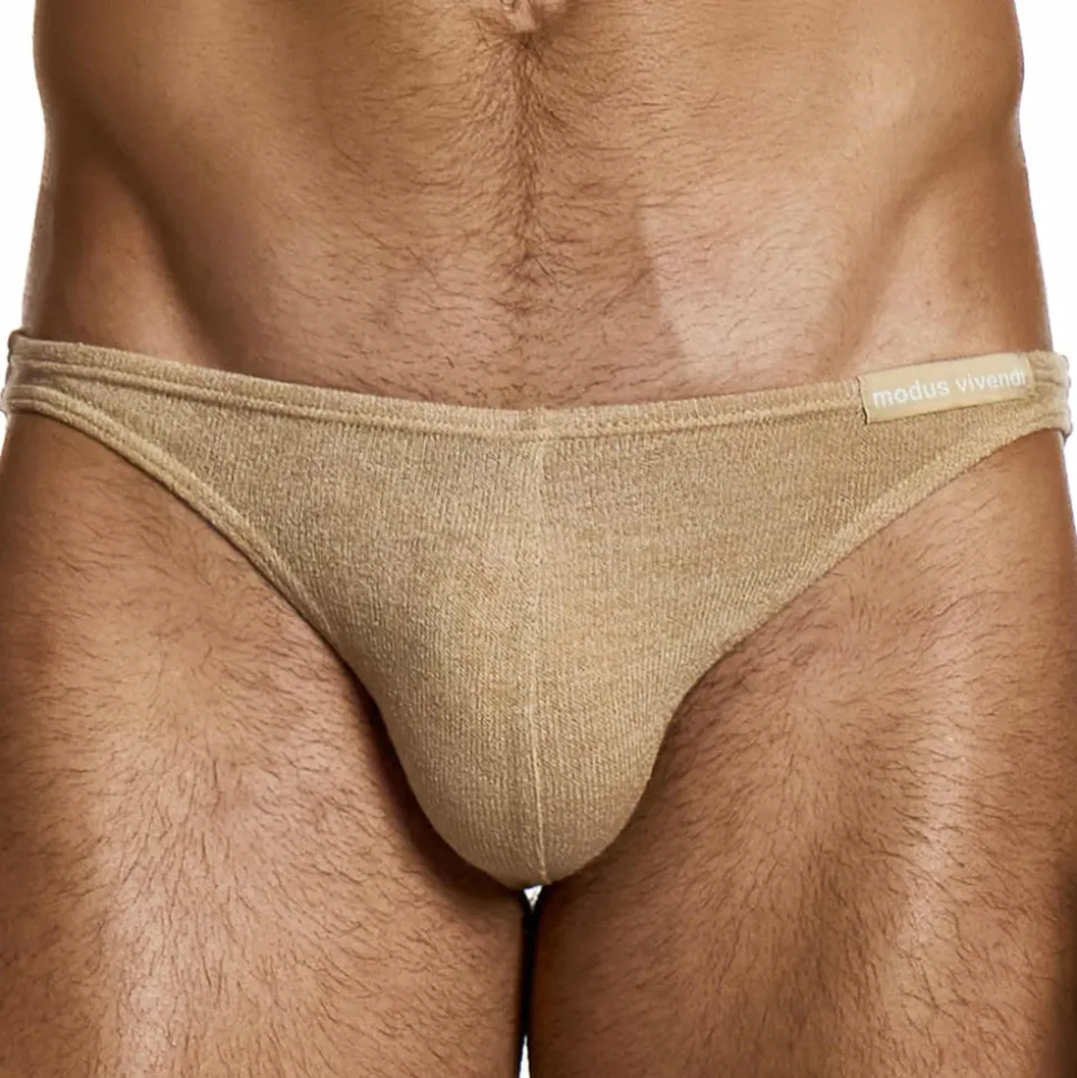 Slip en maille tricotée façon mohair, pour une sensation chaude et douillette. Coupe minimaliste, taille basse et ajustée. Poche frontale non doublée. Etiquette Modus Vivendi sur la fine ceinture élastique recouverte.