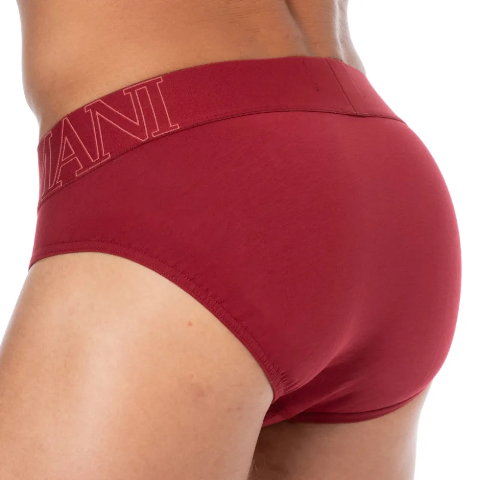 Slip en coton bio extensible, très doux et confortable. Coupe taille basse, simple et élégante. Poche frontale doublée. Large ceinture élastique contrastée signée Emporio Armani.