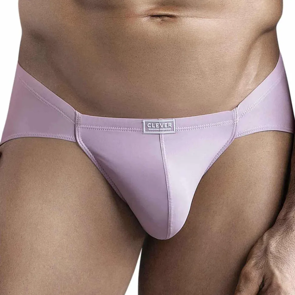Slip super taille basse en microfibre extensible, douce et légère, de couleur pastel. Poche frontale ergonomique non doublée. Coupe originale très ajustée. Fine ceinture élastique recouverte avec logo Clever en silicone.